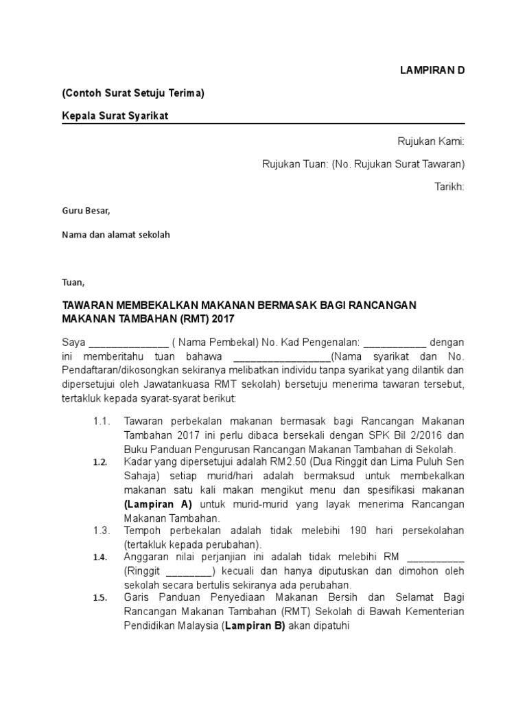 2 Contoh Surat Setuju Terima Rmt 2017 Pdf