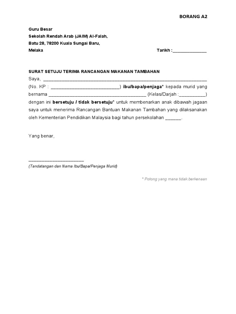 Borang A2 Surat Setuju Terima Rmt Pdf
